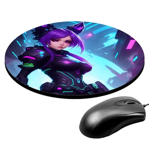 Коврик для мыши Киберпанк аниме девушка, d.20см KM0685