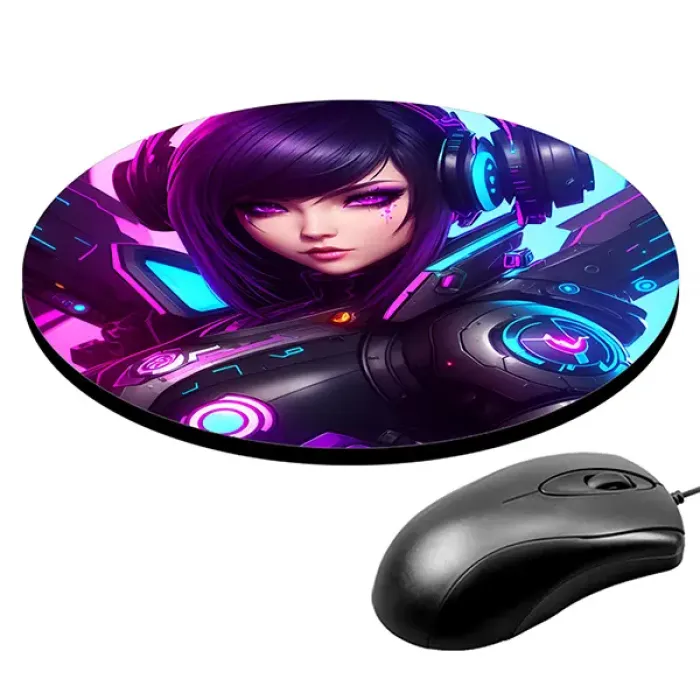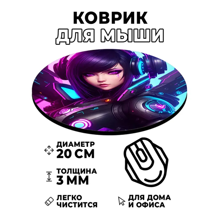 Коврик для мыши Киберпанк аниме девушка, d.20см KM0686