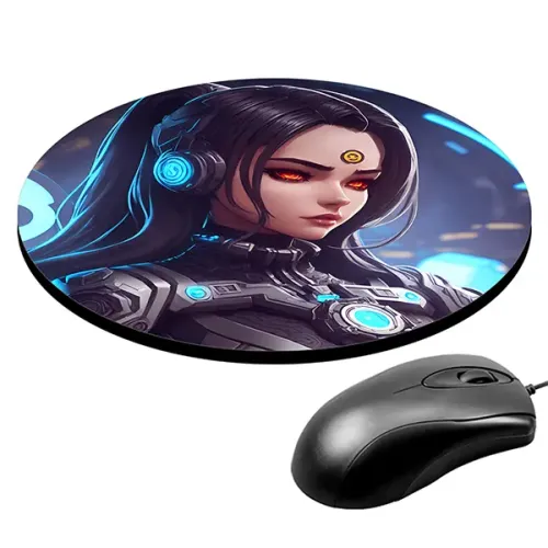 Коврик для мыши Киберпанк аниме девушка, d.20см KM0688