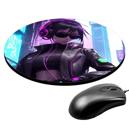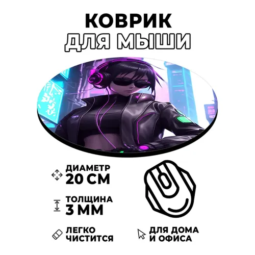 Коврик для мыши Киберпанк аниме девушка, d.20см KM0690