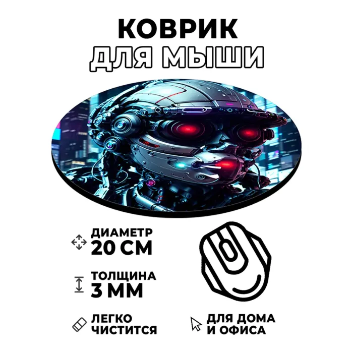 Коврик для мыши Киберпанк робот, d.20см KM0699