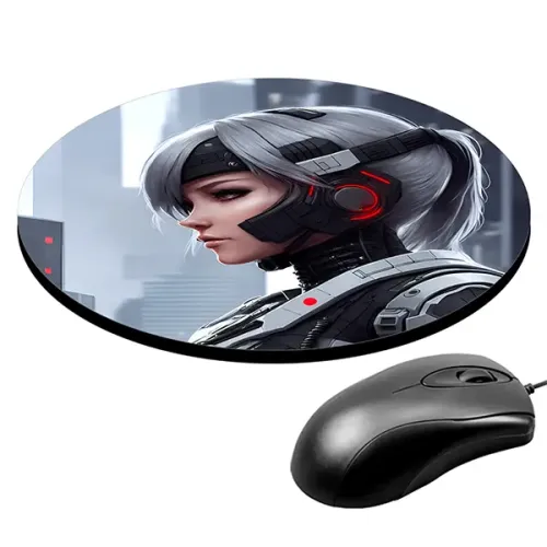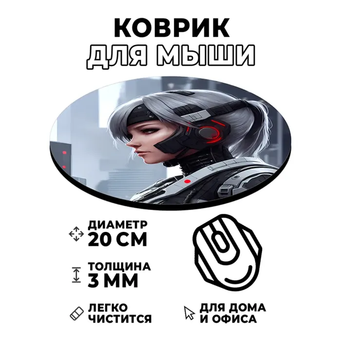 Коврик для компьютерной мыши с уникальным изображением в стиле киберпанк, который станет ярким акцентом рабочего пространства. Он не только украшает стол, но и обеспечивает комфорт во время работы или игр.