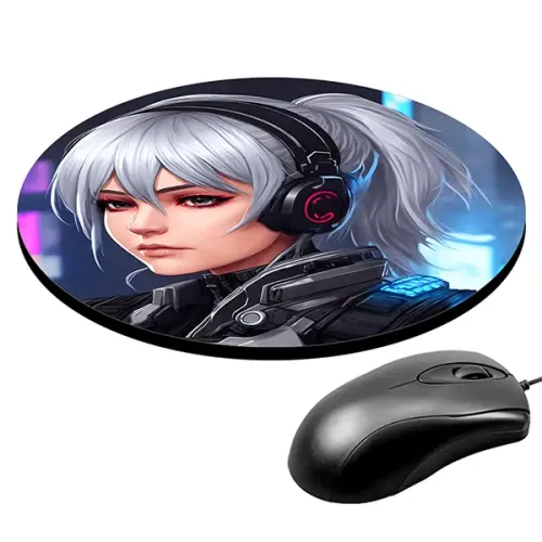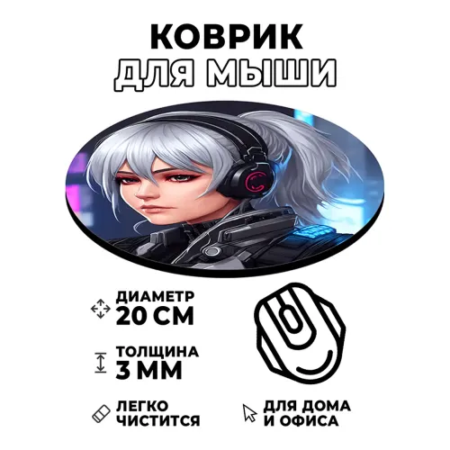 Коврик для мыши Киберпанк девушка, d.20см KM0707