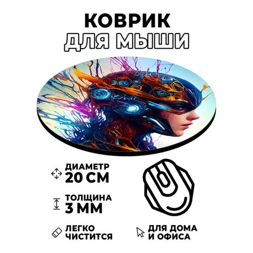 Коврик для компьютерной мыши с уникальным изображением в стиле киберпанк, символизирующим современность и технологический прогресс. Идеально подходит для работы или игр, добавляя стильный акцент на рабочем месте.