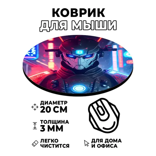 Коврик для компьютерной мыши с уникальным изображением в стиле киберпанк, олицетворяющим дух самурая. Этот аксессуар не только добавляет стиль в рабочее пространство, но и обеспечивает комфорт во время использования.