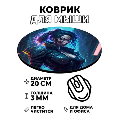 Коврик для мыши Киберпанк девушка, d.20см KM0713