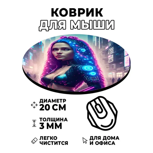 Коврик для мыши Киберпанк девушка, d.20см KM0714