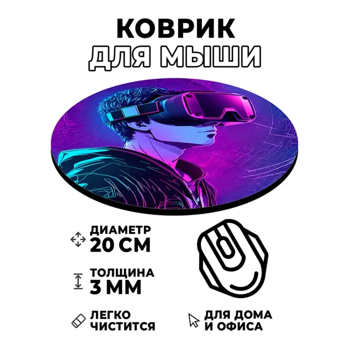 Коврик для мыши Киберпанк парень VR, d.20см KM0728