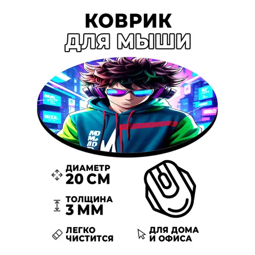 Коврик для компьютерной мыши с уникальным изображением в стиле киберпанк. Он не только добавит яркие акценты на рабочем месте, но и обеспечит комфортное использование. Диаметр коврика составляет 20 см, а толщина — 3 мм, что гарантирует отличную поддержку и стабильность во время работы.
