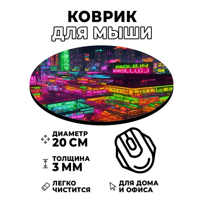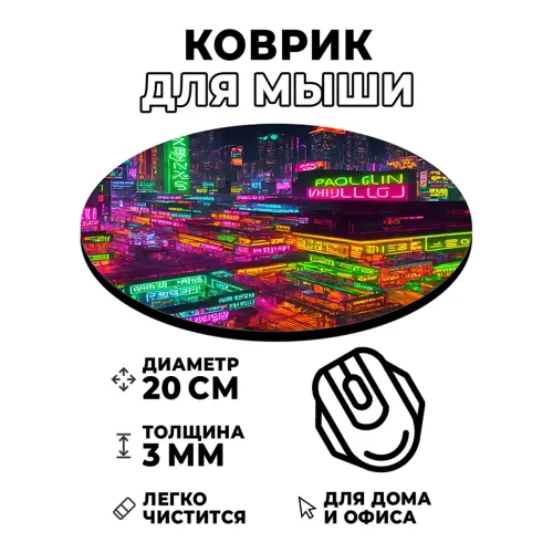 Коврик для компьютерной мыши с ярким изображением в стиле киберпанк станет отличным дополнением рабочего места. Он не только привлекает внимание своим необычным дизайном, но и обеспечивает комфортное использование мышки благодаря гладкой поверхности.