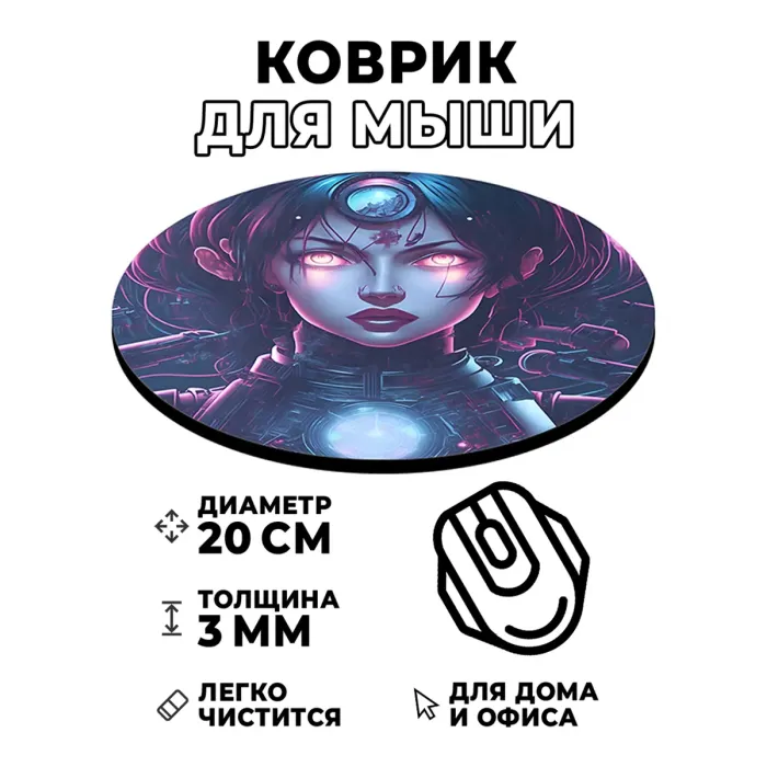 Коврик для мыши Киберпанк девушка киборг, d.20см KM0736