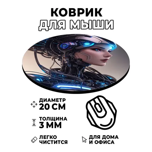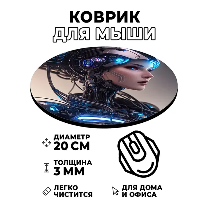 Коврик для компьютерной мыши с уникальным изображением в стиле киберпанк. Этот аксессуар не только добавляет яркости рабочему месту, но и символизирует современный подход к технологиям и искусству. Диаметр коврика составляет 20 см, а толщина — 3 мм, что обеспечивает комфортное использование и отличное скольжение мышки.