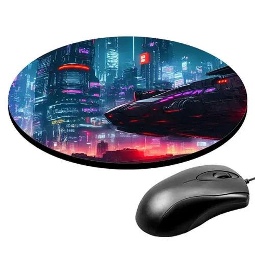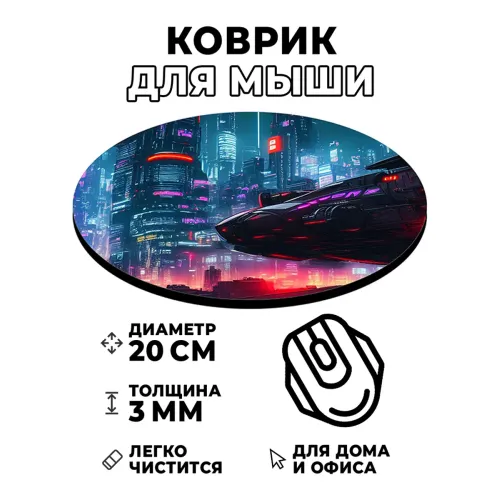 Коврик для компьютерной мыши с уникальным изображением в стиле киберпанк. Этот аксессуар не только украшает рабочее пространство, но и создает атмосферу современного города будущего. С диаметром 20 см и толщиной 3 мм он обеспечивает отличное скольжение мышки, что делает работу за компьютером более комфортной.