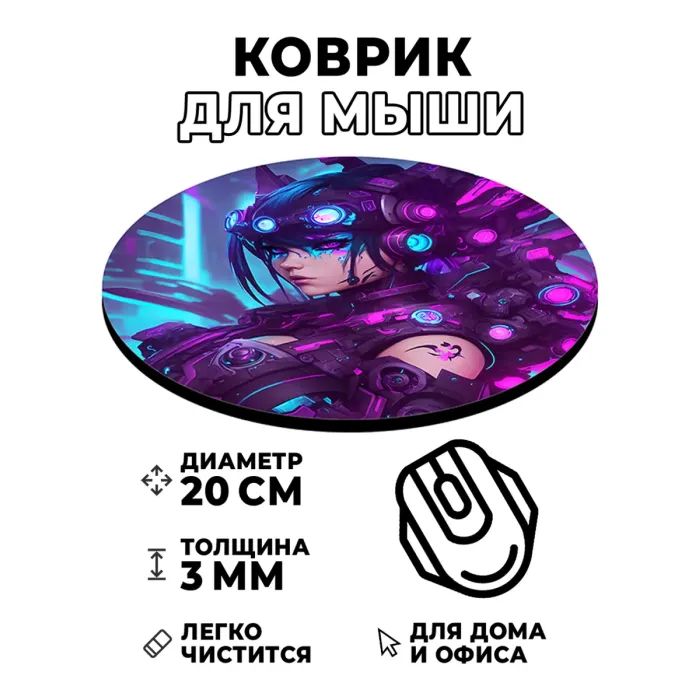 Коврик для компьютерной мыши с уникальным изображением в стиле киберпанк. Этот аксессуар не только добавляет яркий акцент в рабочее пространство, но и обеспечивает комфортное использование благодаря своему качеству.