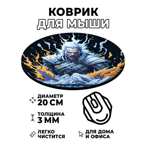 Коврик для мыши с изображением из популярной серии "Ведьмак" станет отличным дополнением рабочего места и подарком для поклонников этой вселенной. С диаметром 20 см и толщиной 3 мм, он обеспечивает комфортное использование компьютерной мышки.