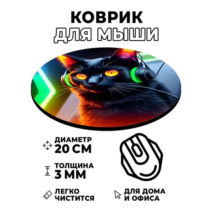 Коврик для мыши Гейминг кот, d.20см KM0770