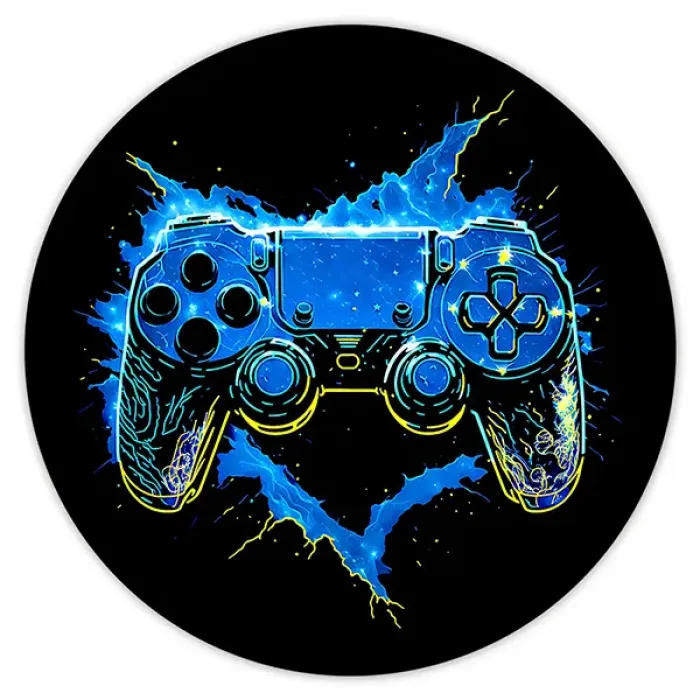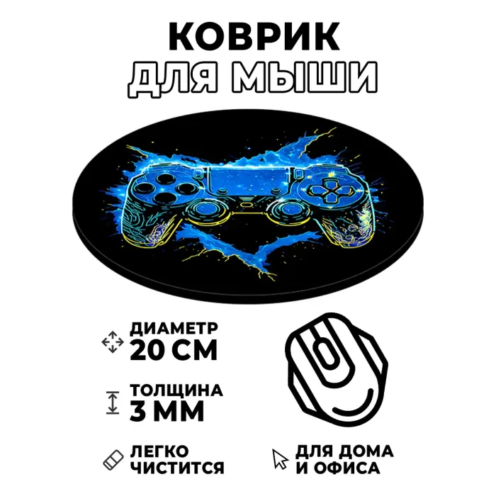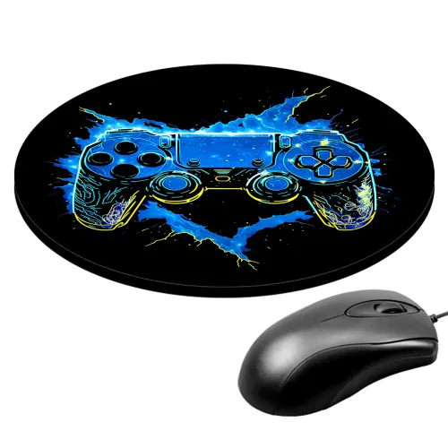 Коврик для компьютерной мыши круглой формы с изображением геймпада.