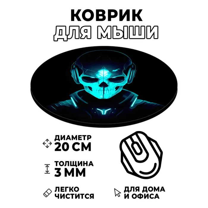 Коврик для мыши Гейминг Скелет, d.20см KM0773