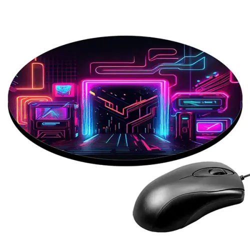Коврик для компьютерной мыши с изображением зала игровых автоматов.
