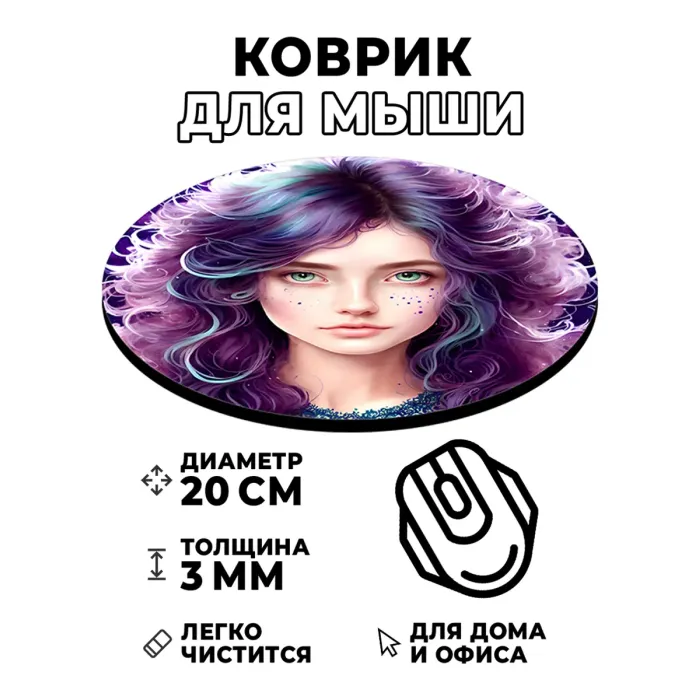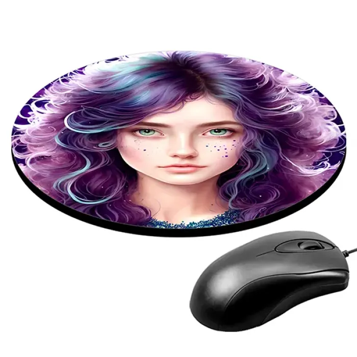Коврик для компьютерной мыши круглой формы с изображением девушки.