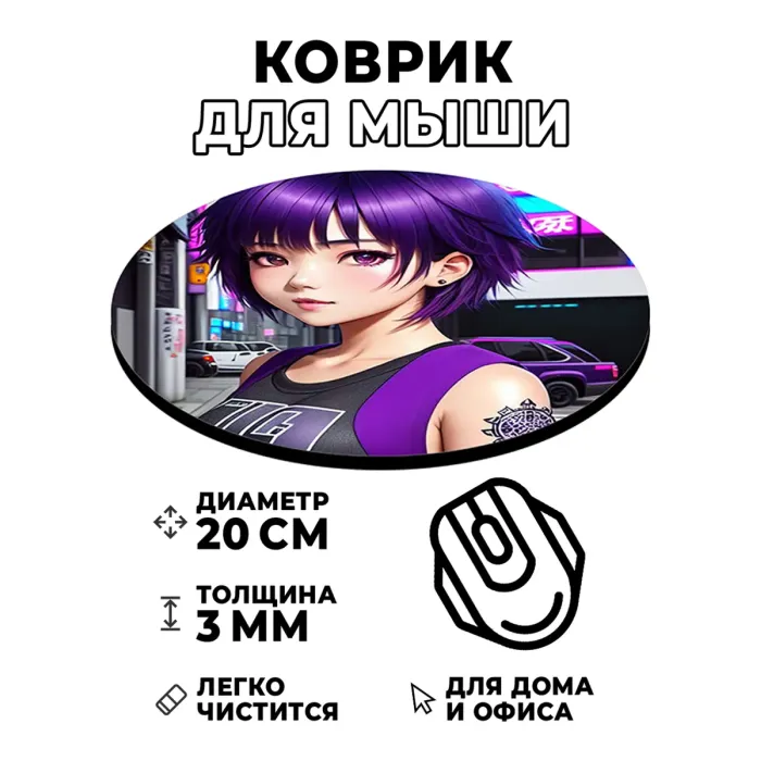 Коврик для компьютерной мыши круглой формы с полноцветным изображением.