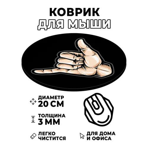 Коврик для мыши Жест шака (джамбо), d.20см KM0827