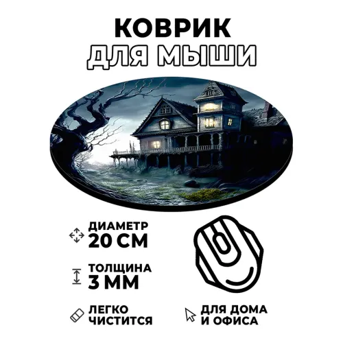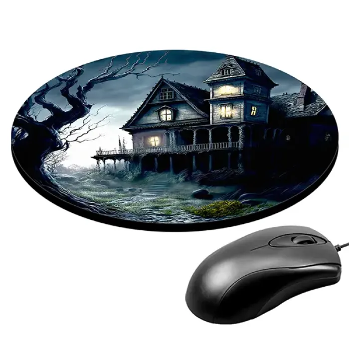 Коврик для компьютерной мыши круглой формы с изображением проклятого дома.