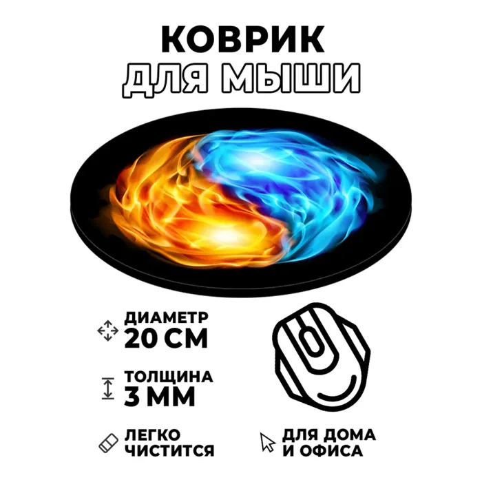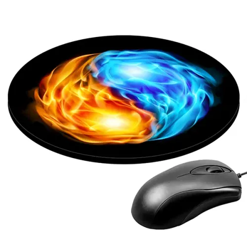 Коврик для компьютерной мыши круглой формы с нанесённым символом Инь-Ян.