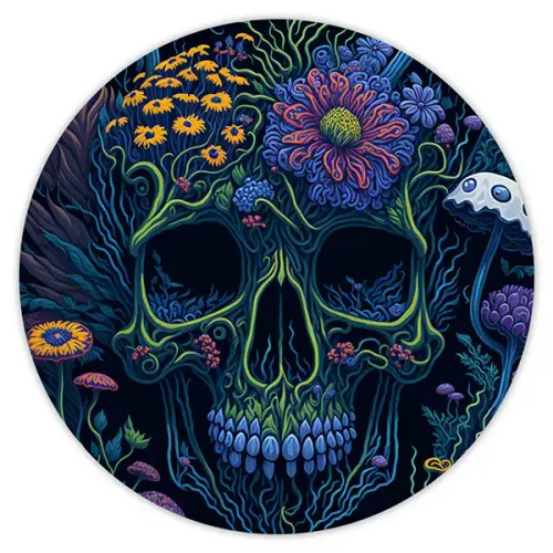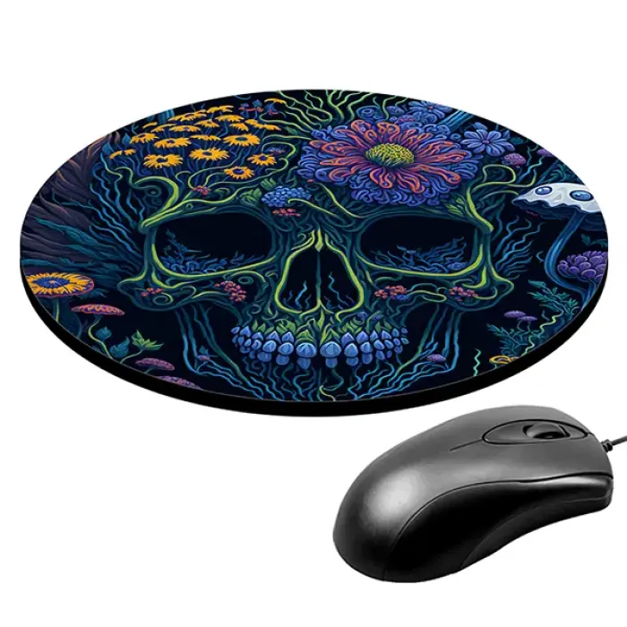 Коврик для компьютерной мыши круглой формы с изображением черепа.