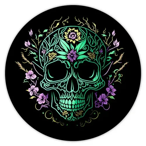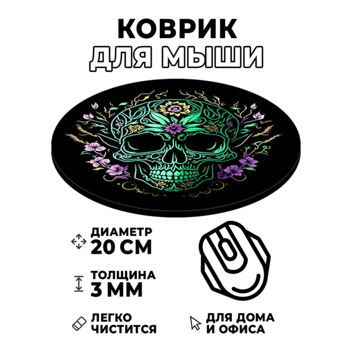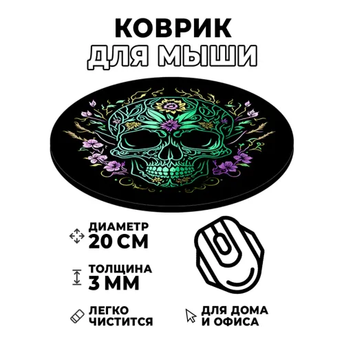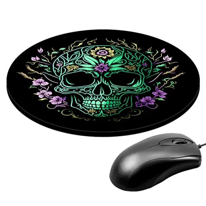 Коврик для компьютерной мыши круглой формы с изображением черепа.