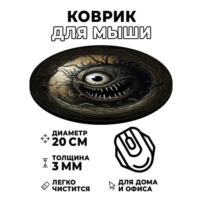 Коврик для компьютерной мыши с ярким изображением станет отличным дополнением рабочего места. Он не только привносит стиль, но и обеспечивает комфорт в использовании. Диаметр коврика составляет 20 см, а толщина — 3 мм, что гарантирует отличное скольжение мышки.