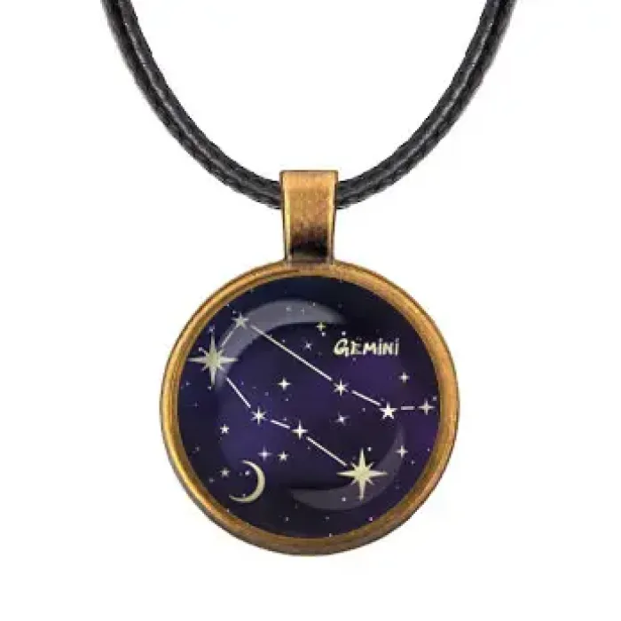 Кулон 'Знаки Зодиака - Близнецы' является стильным аксессуаром, который отражает индивидуальность и характер представителя этого знака. Изготовленный из бижутерного сплава с покрытием под бронзу и стекла, он сочетает в себе прочность и элегантность. Основные особенности:
