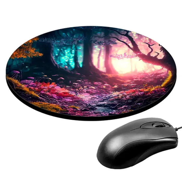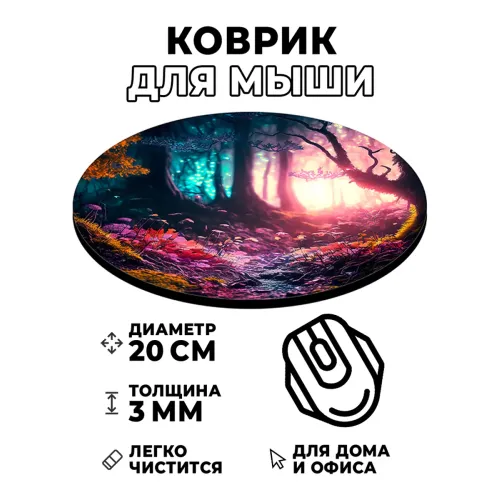 Коврик для компьютерной мышки с изображением, который станет не только практичным аксессуаром, но и стильным элементом рабочего пространства. Он украшен ярким изображением леса, что придаёт атмосфере уюта и гармонии.