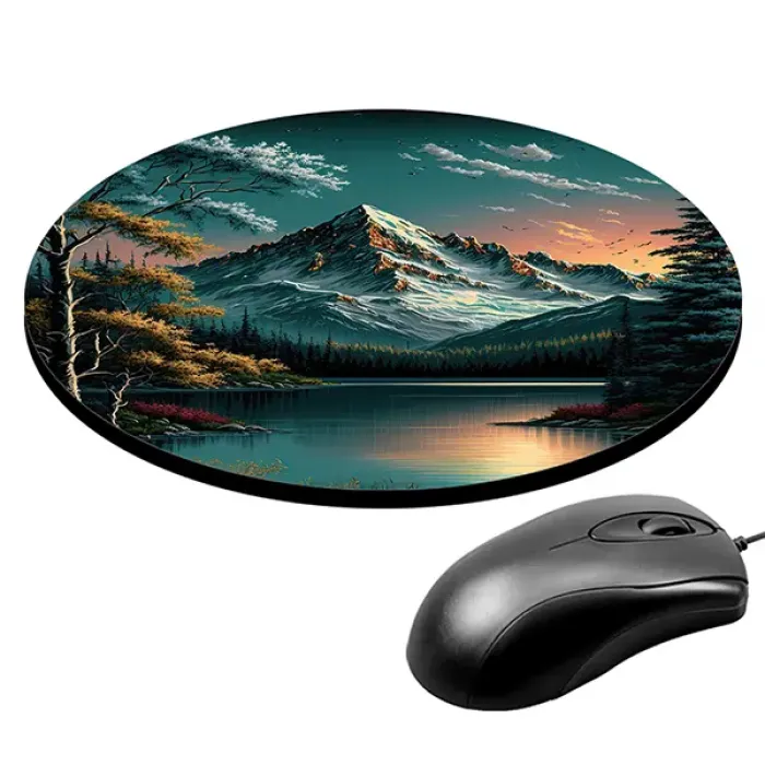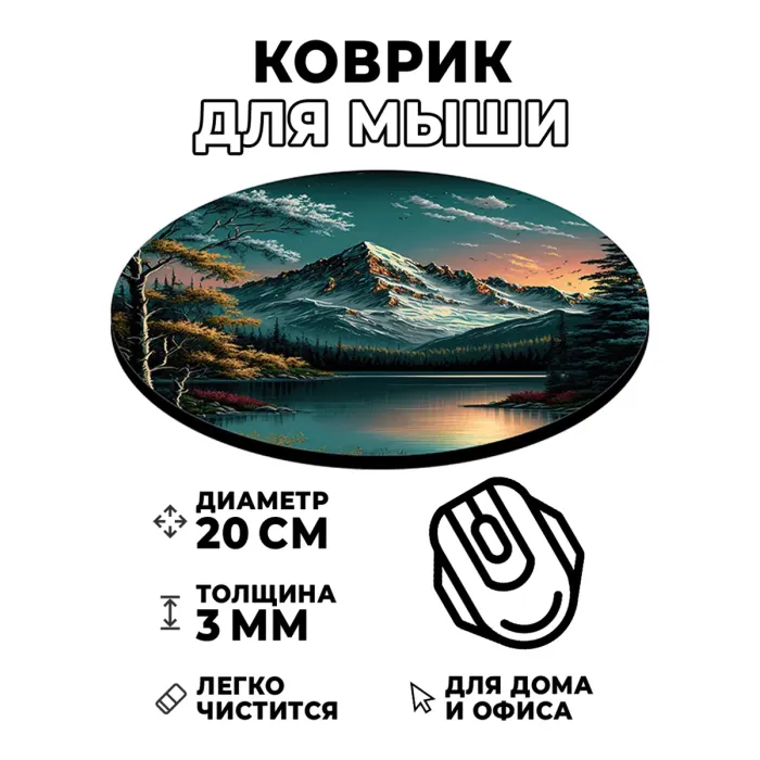 Коврик для компьютерной мыши с изображением горного пейзажа и озера станет не только практичным аксессуаром, но и стильным элементом рабочего пространства. Это изделие имеет диаметр 20 см и толщину 3 мм, что обеспечивает комфортное использование в течение долгого времени.