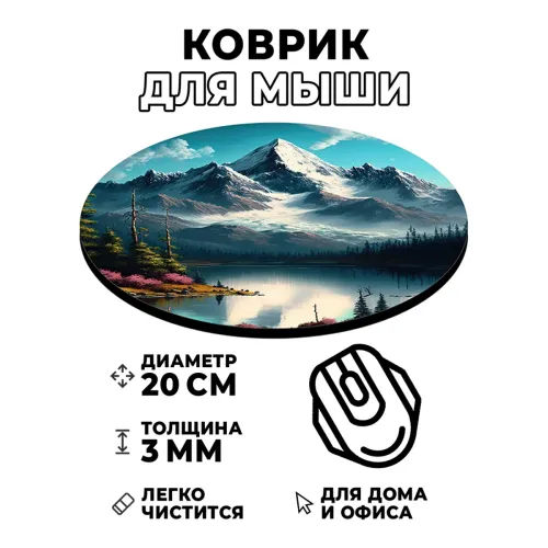 Коврик для мыши Гора и озеро, d.20см KM0939