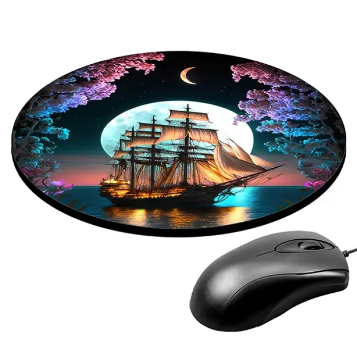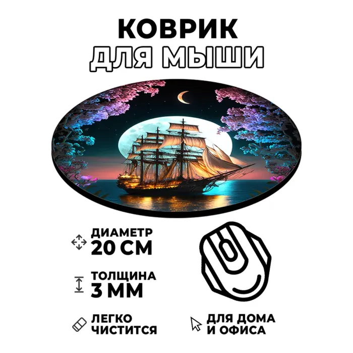 Коврик для компьютерной мыши с изображением «Ночной парусник» станет не только практичным аксессуаром, но и стильным элементом рабочего пространства. Его диаметр составляет 20 см, а толщина — 3 мм, что обеспечивает комфортное использование и отличное скольжение мышки.