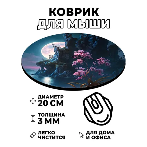 Коврик для компьютерной мыши с изображением полнолуния — это стильный и практичный аксессуар, который добавит уникальности рабочему месту. Он не только украшает стол, но и обеспечивает комфорт при использовании мыши.