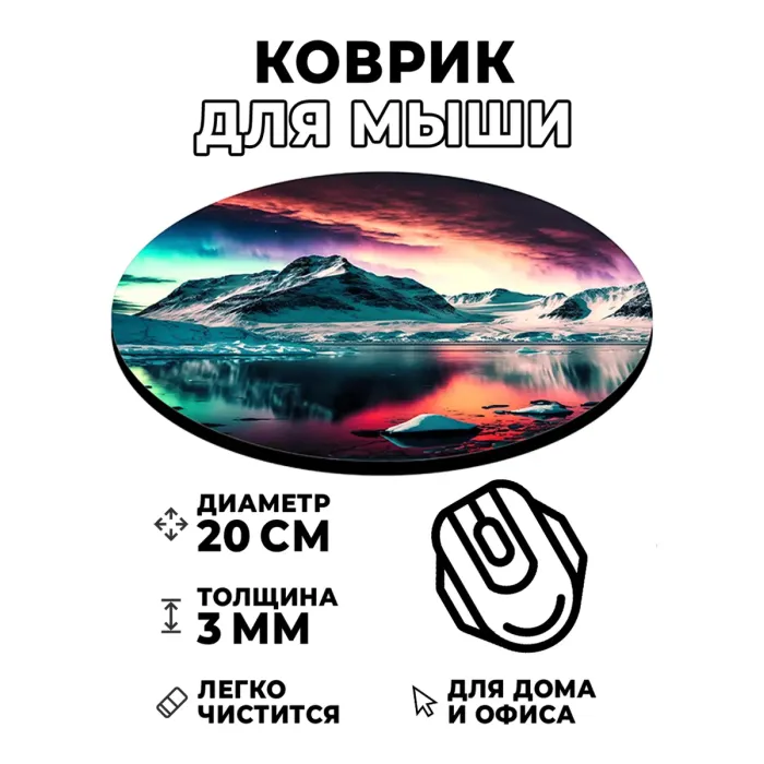 Коврик для компьютерной мыши с уникальным изображением гор и северного сияния станет не только практичным аксессуаром, но и стильным элементом рабочего пространства. Он символизирует красоту природы и вдохновение, которое можно черпать из окружающего мира.