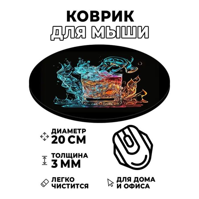 Коврик для компьютерной мыши круглой формы с полноцветной печатью.