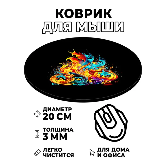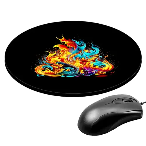 Коврик для компьютерной мыши круглой формы с изображением огня.