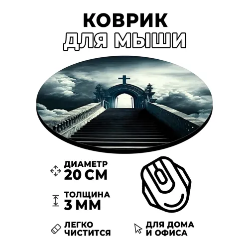 Коврик для компьютерной мыши «Врата в Рай» — это не просто аксессуар, а элемент стиля и комфорта. С диаметром 20 см и толщиной 3 мм он идеально подходит для работы и игр, обеспечивая отличное скольжение мышки. Изображение на коврике отличается стойкостью, четкостью и контрастностью, что делает его привлекательным дополнением к любому рабочему месту. Этот коврик станет прекрасным подарком или украшением стола для тех, кто ценит качество и оригинальность.