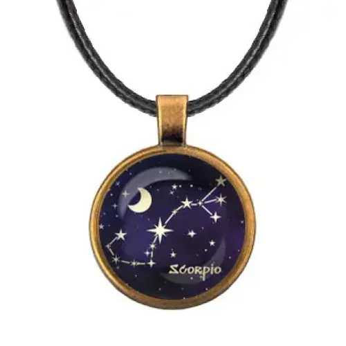 Кулон Знаки Зодиака - Скорпион представляет собой изысканное украшение, которое символизирует силу и страсть этого знака. Изготовленный из бижутерного сплава с покрытием под бронзу и стеклом, кулон имеет диаметр 28 мм. Его изображение защищено выпуклой стеклянной линзой, что придаёт ему дополнительную выразительность. В комплект входит чёрный шнурок с замком лобстер для удобства ношения. Этот кулон станет отличным подарком для людей, родившихся под знаком Скорпиона или тех, кто ценит астрологическую символику.