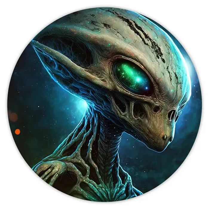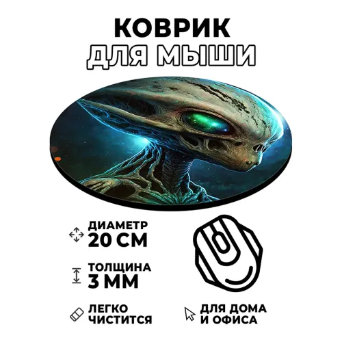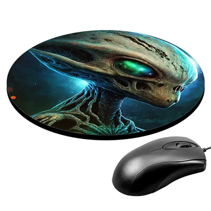 Коврик для компьютерной мыши круглой формы с изображением инопланетянина.