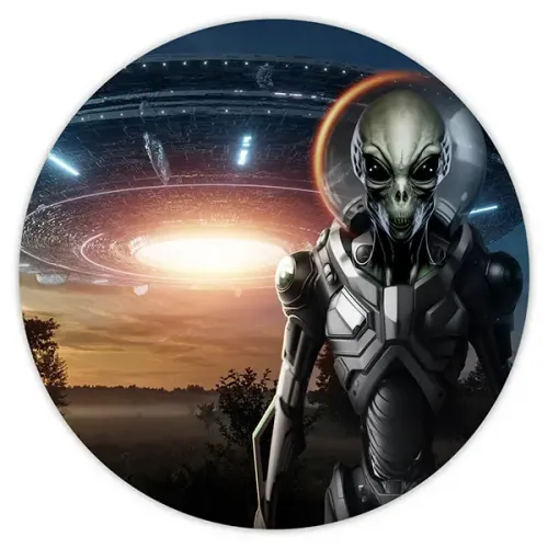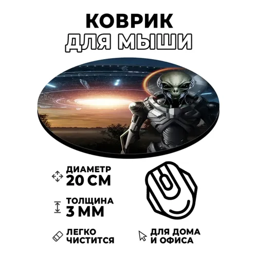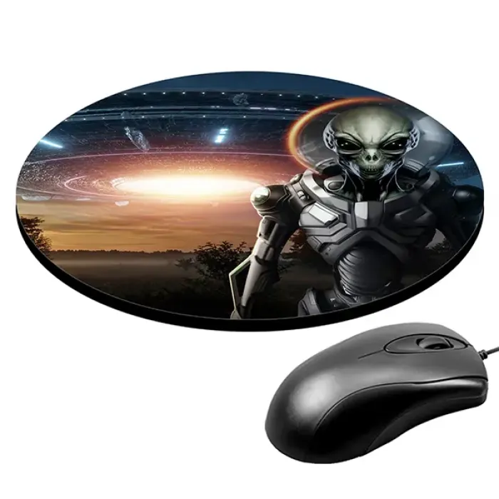 Коврик для компьютерной мыши круглой формы с изображением инопланетянина в форме НЛО.