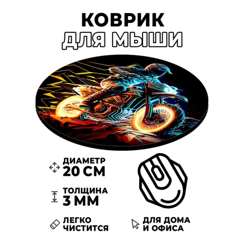 Коврик для компьютерной мыши с изображением мотоциклиста — это стильный аксессуар, который добавит индивидуальности рабочему месту. Он выполнен из качественных материалов и обладает рядом преимуществ.