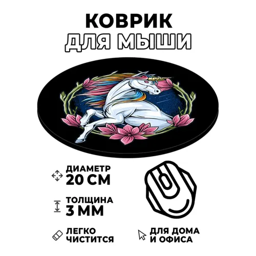Коврик для компьютерной мыши с изображением единорога — это не просто аксессуар, а стильный элемент рабочего пространства. Он привносит в обстановку нотки волшебства и вдохновения, создавая уютную атмосферу для работы и творчества.