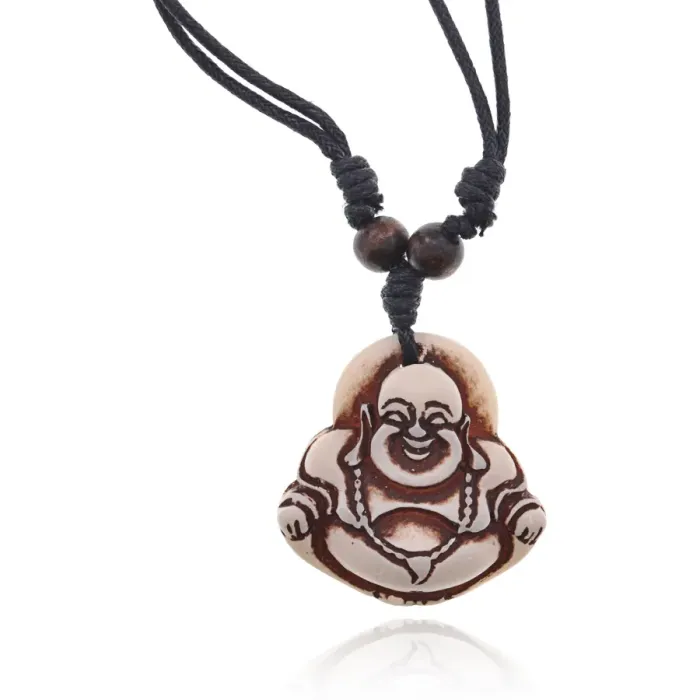 Сувенирный амулет Хотей из пластика с имитацией резьбы по кости, на шнурке.