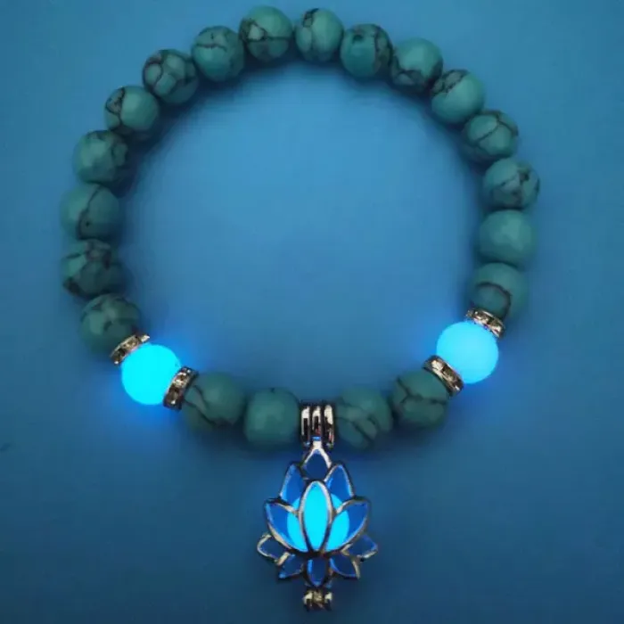 Стрейч-браслет из синтетической бирюзы и светящегося нефрита.