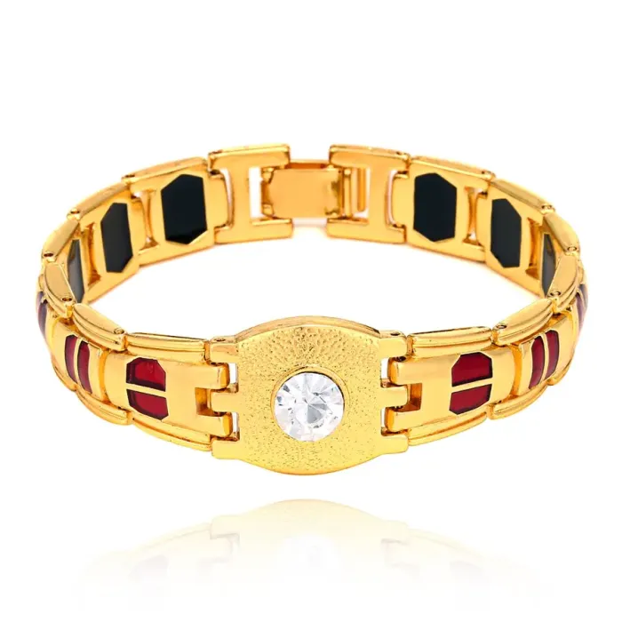 Браслет длиной 21 см из нержавеющей стали с золотым покрытием и вставками из страз. Замок коробчатого типа.