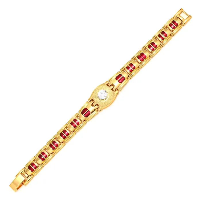 Материал и изготовление: Нержавеющая сталь с покрытием под золото. Декоративные вставки из страз.